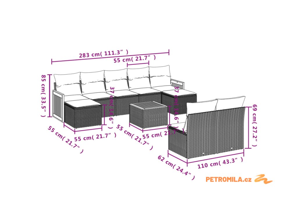 Sada zahradních pohovek s polštářem 9 pcs Béžová Poly ratan
