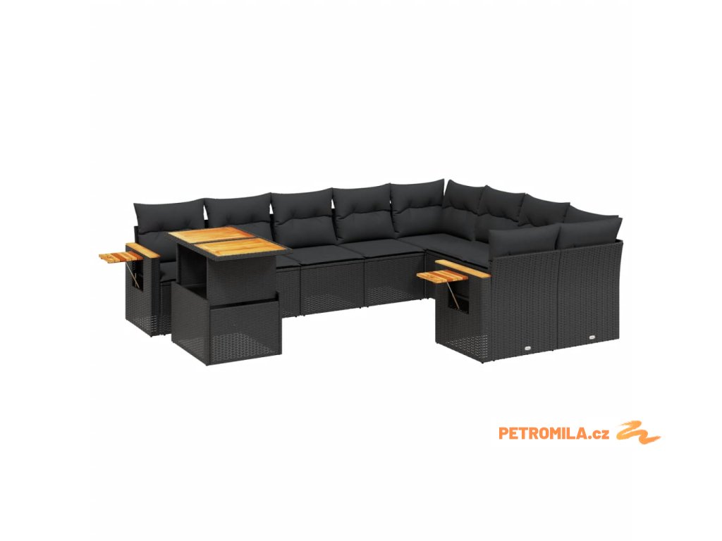 10dílná zahradní sedací souprava s poduškami černá polyratan