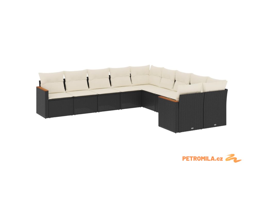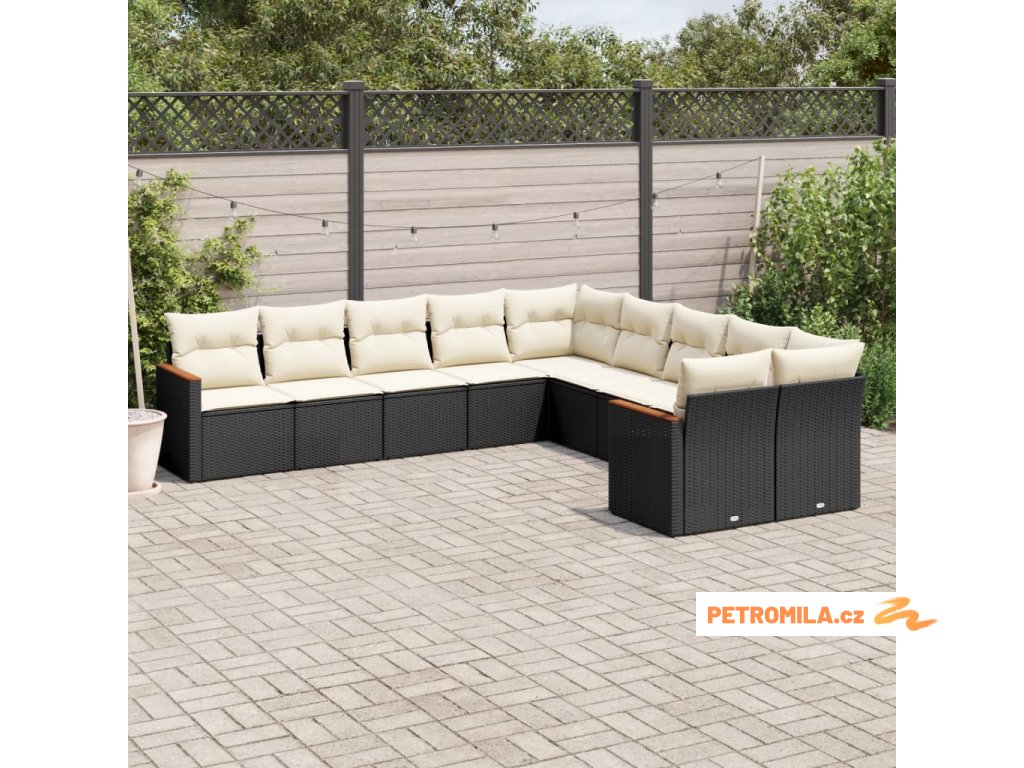 10dílná zahradní sedací souprava s poduškami černá polyratan
