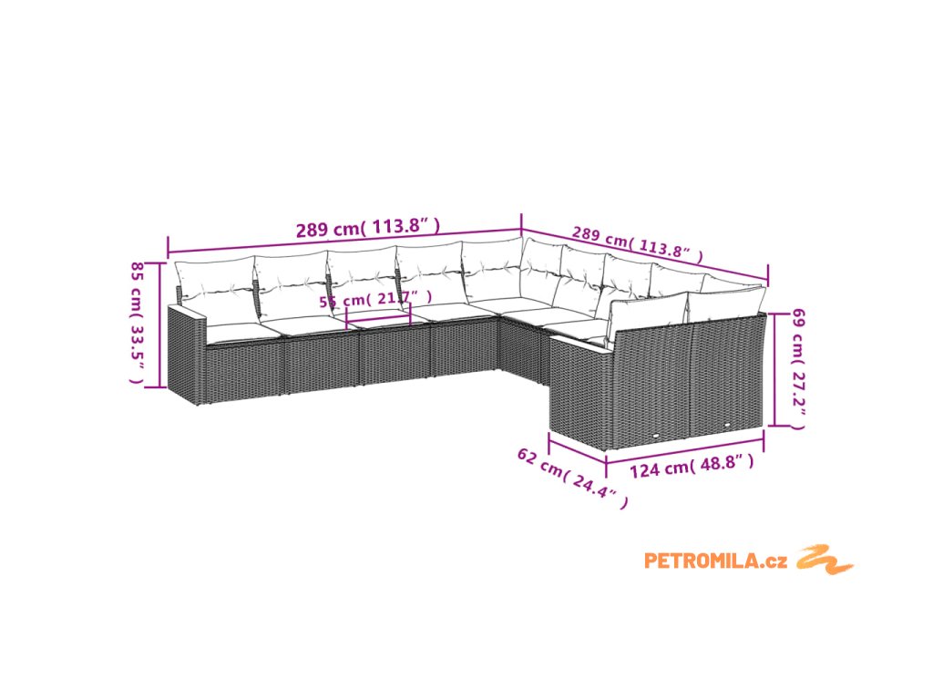 - Rozměry podušky na sedák: 55 x 55 x 3 cm (Š x H x T)