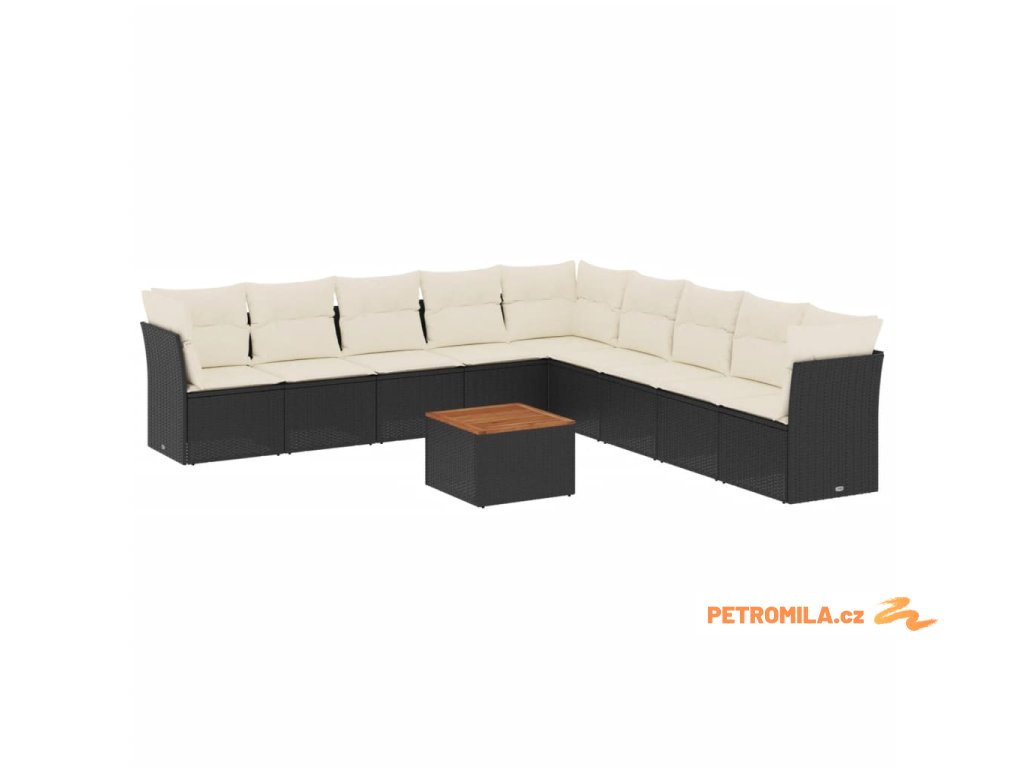 10dílná zahradní sedací souprava s poduškami černá polyratan