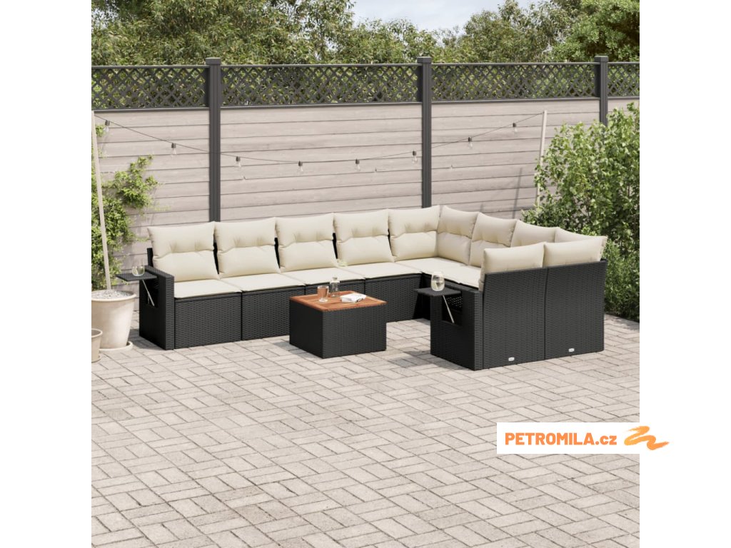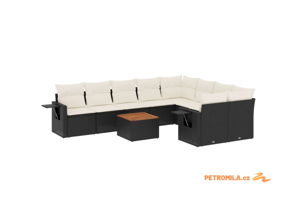 10dílná zahradní sedací souprava s poduškami černá polyratan