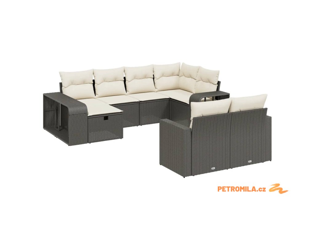 10dílná zahradní sedací souprava s poduškami černá polyratan