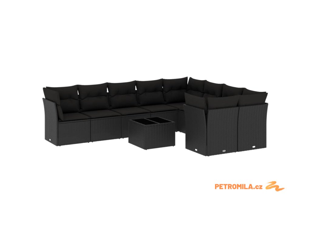 10dílná zahradní sedací souprava s poduškami černá polyratan