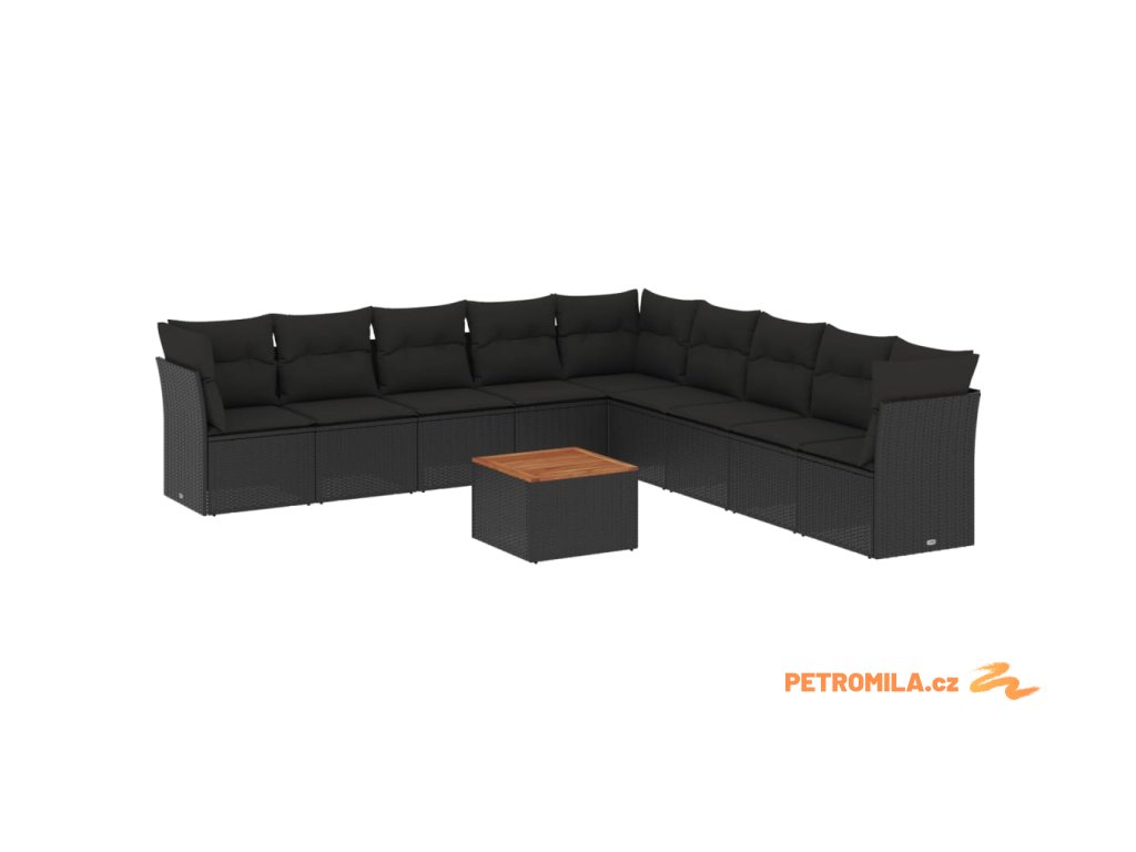 10dílná zahradní sedací souprava s poduškami černá polyratan