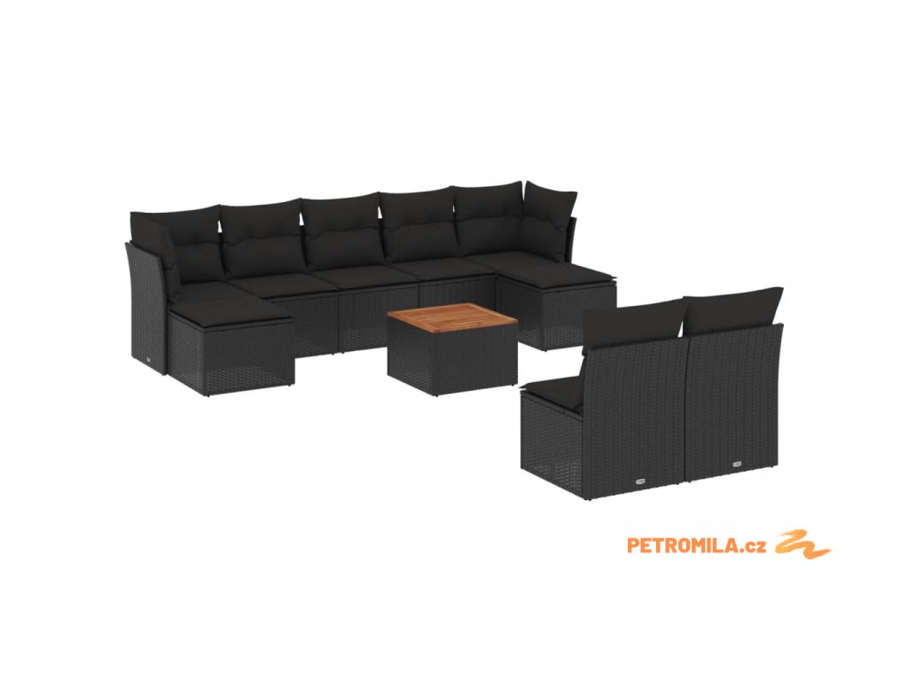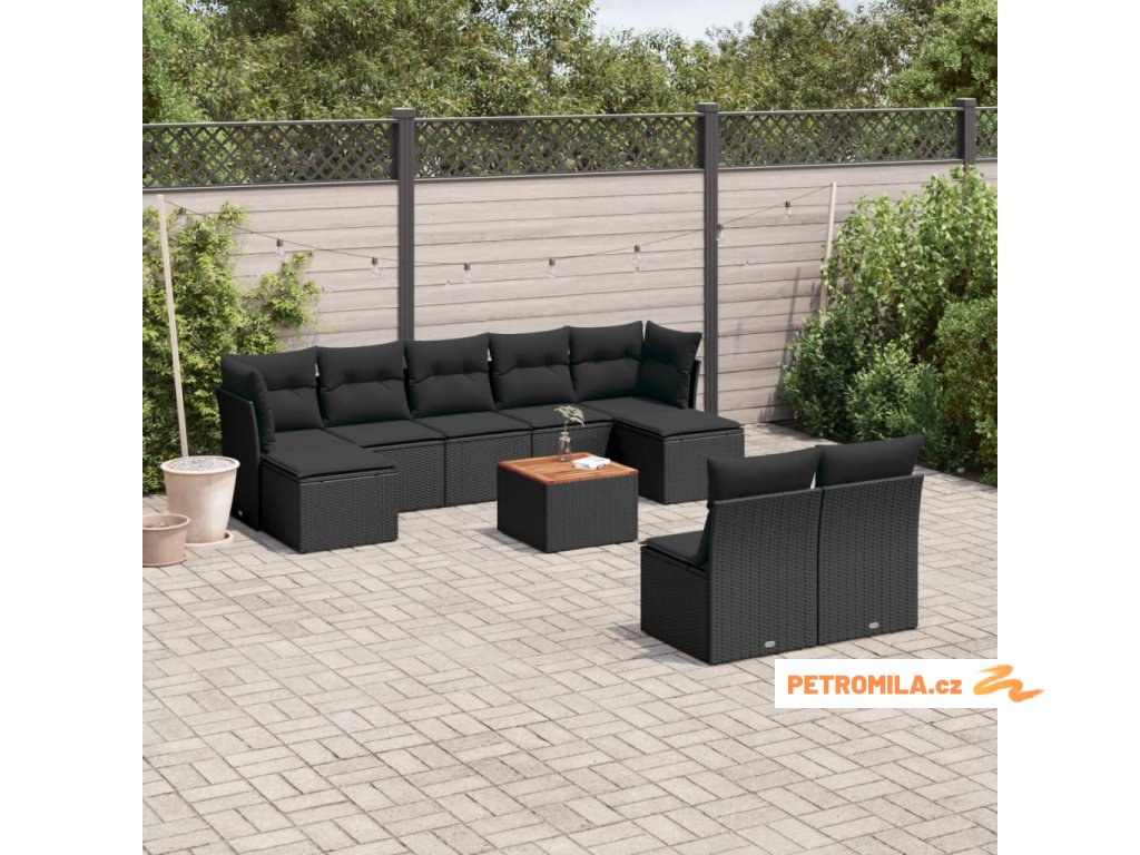 10dílná zahradní sedací souprava s poduškami černá polyratan