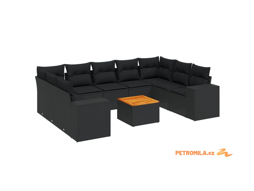 10dílná zahradní sedací souprava s poduškami černá polyratan