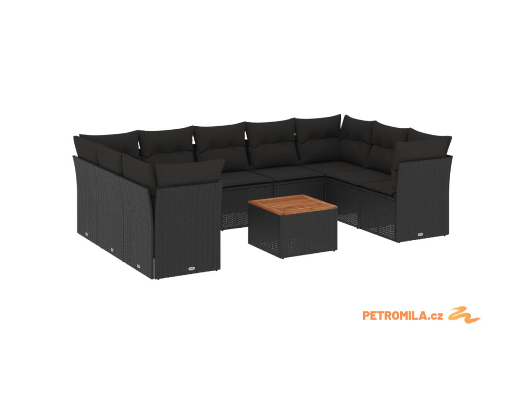 10dílná zahradní sedací souprava s poduškami černá polyratan