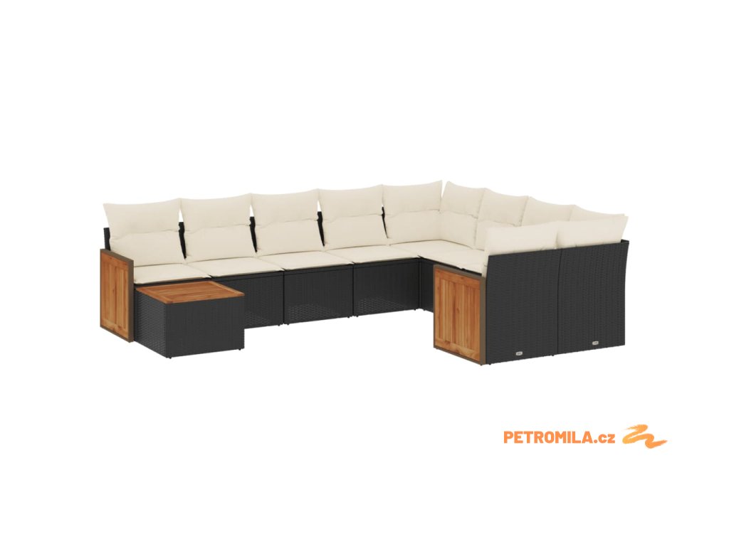 10dílná zahradní sedací souprava s poduškami černá polyratan