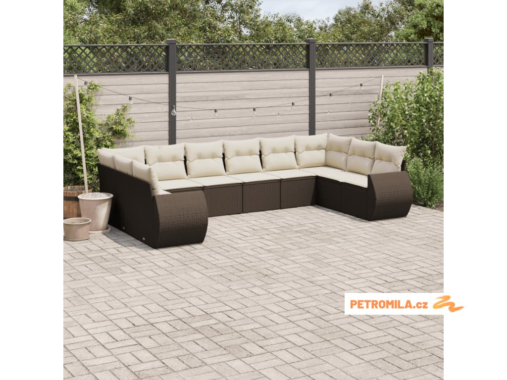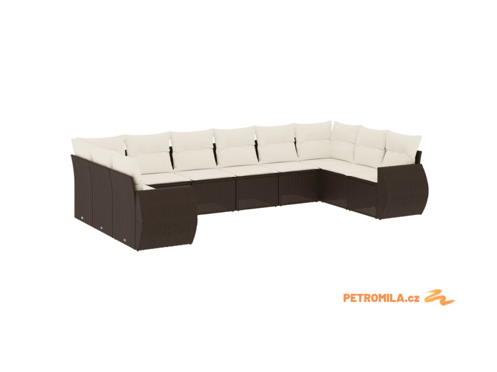 10dílná zahradní sedací souprava s poduškami hnědá polyratan
