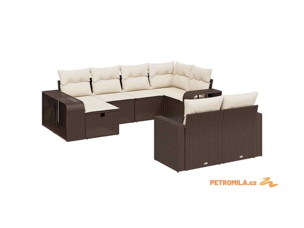 Sada zahradních pohovek s polštářem 8 pcs Béžová Poly ratan