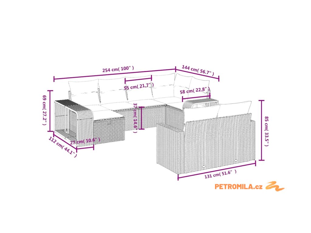 Sada zahradních pohovek s polštářem 9 pcs Béžová Poly ratan