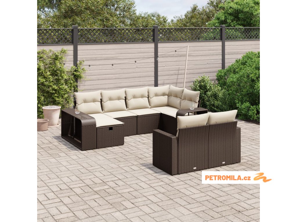 10dílná zahradní sedací souprava s poduškami hnědá polyratan