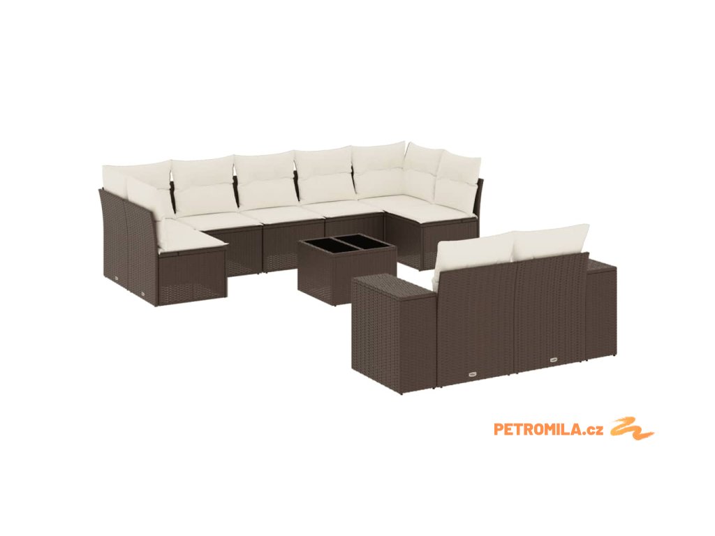 10dílná zahradní sedací souprava s poduškami hnědá polyratan