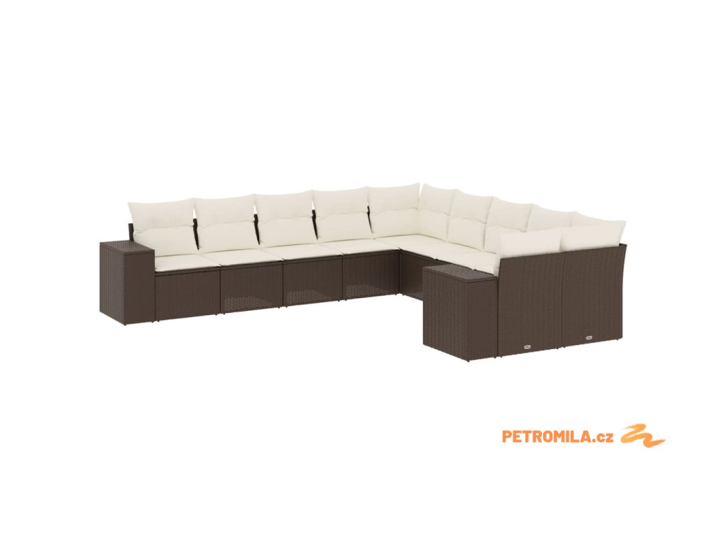 10dílná zahradní sedací souprava s poduškami hnědá polyratan