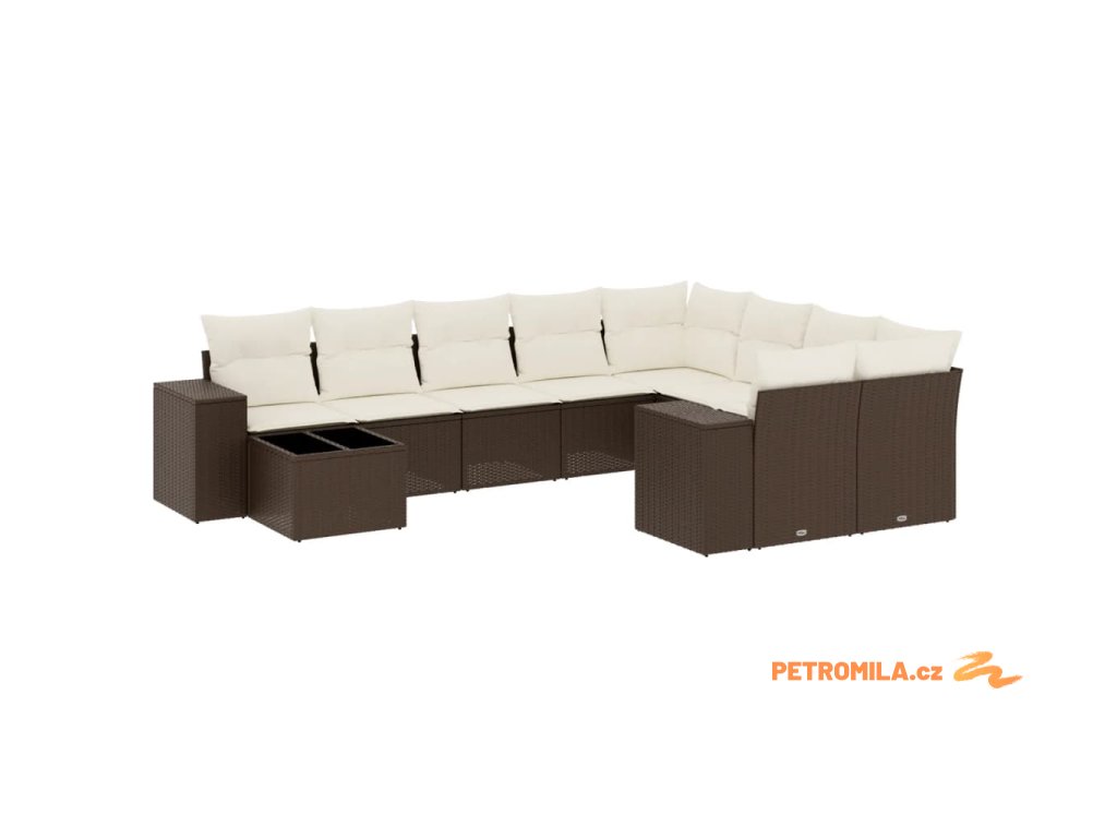 10dílná zahradní sedací souprava s poduškami hnědá polyratan
