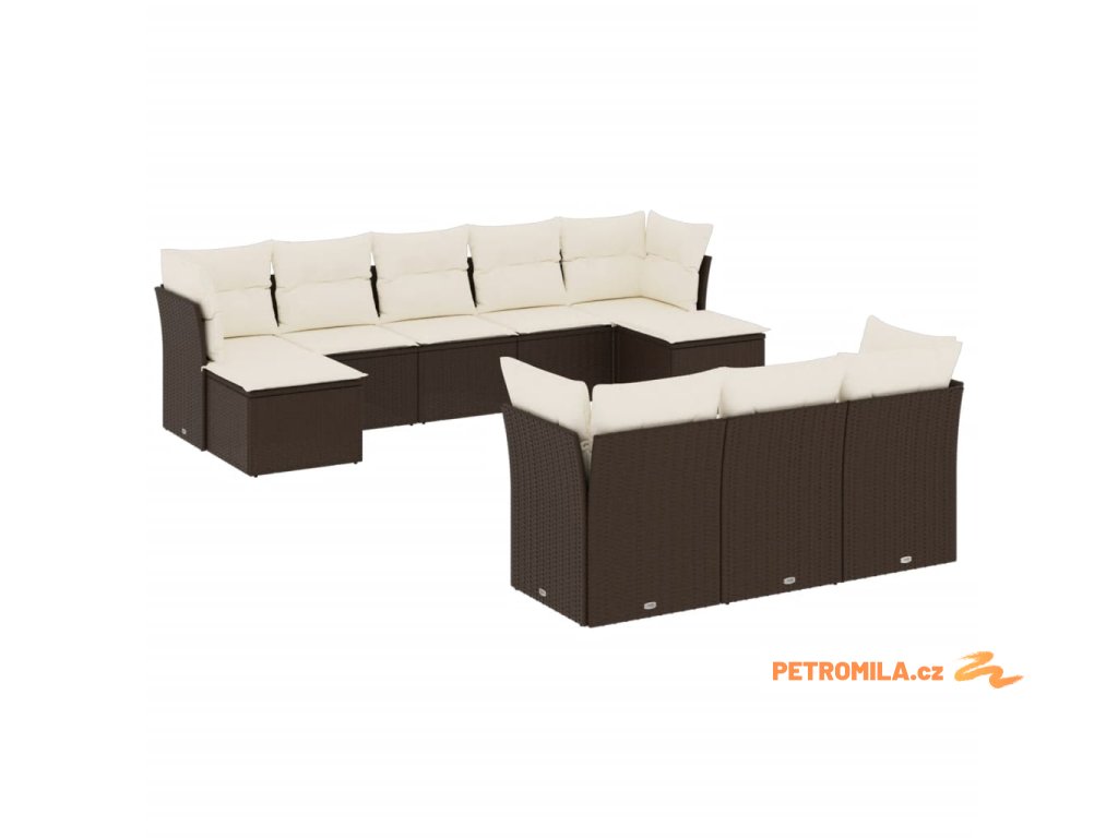 10dílná zahradní sedací souprava s poduškami hnědá polyratan