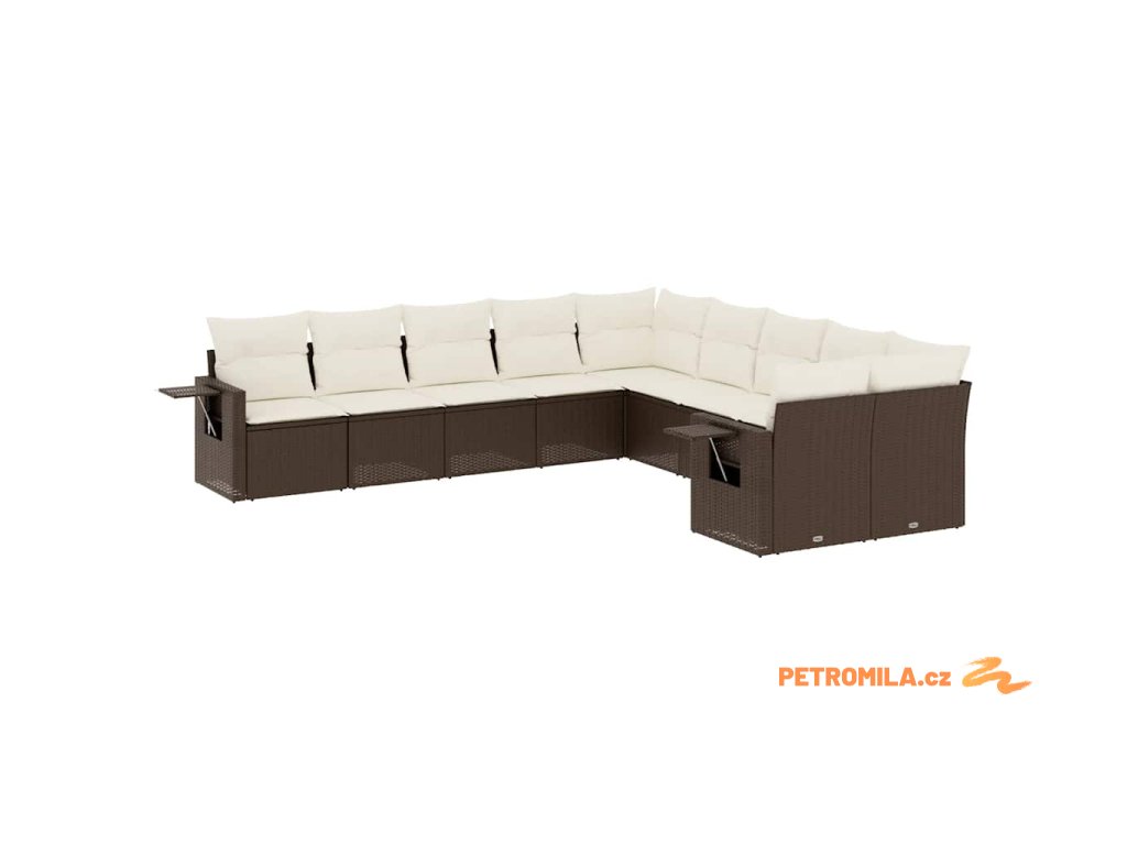 10dílná zahradní sedací souprava s poduškami hnědá polyratan