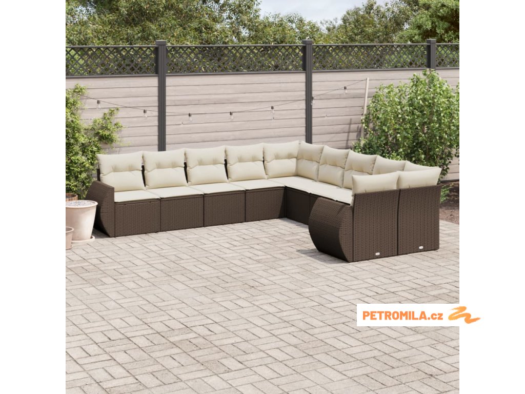 10dílná zahradní sedací souprava s poduškami hnědá polyratan
