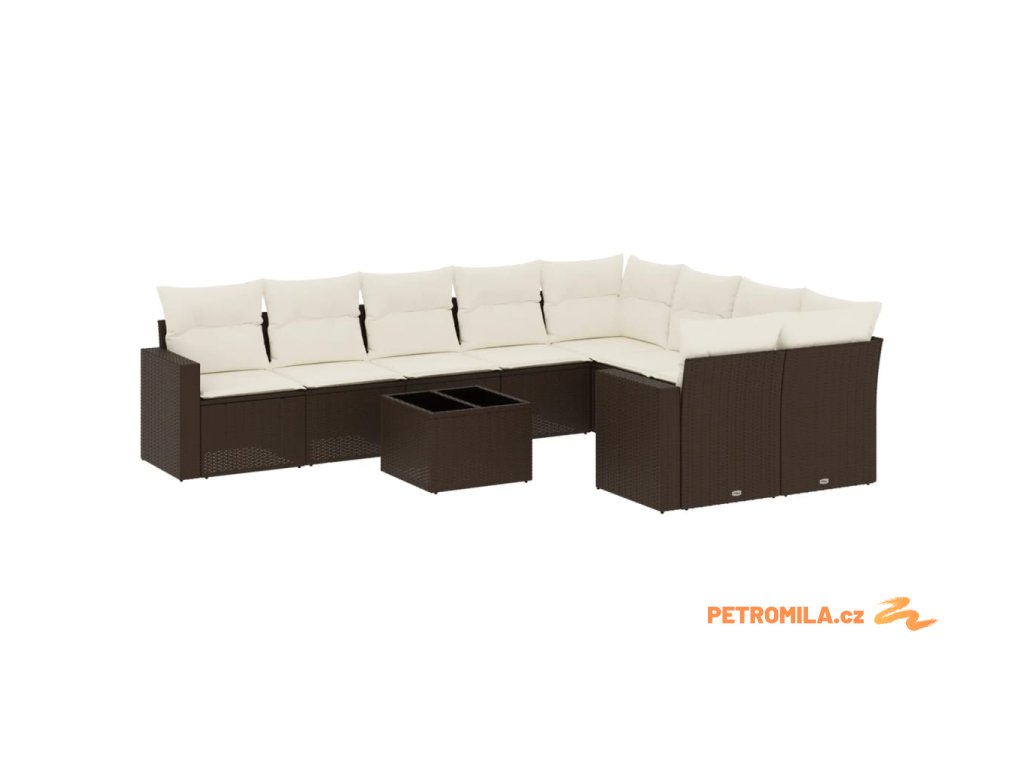 10dílná zahradní sedací souprava s poduškami hnědá polyratan