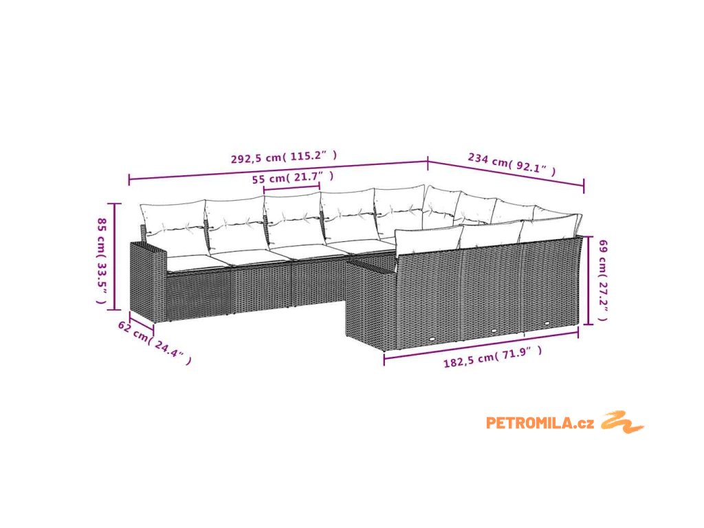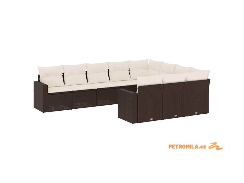 10dílná zahradní sedací souprava s poduškami hnědá polyratan