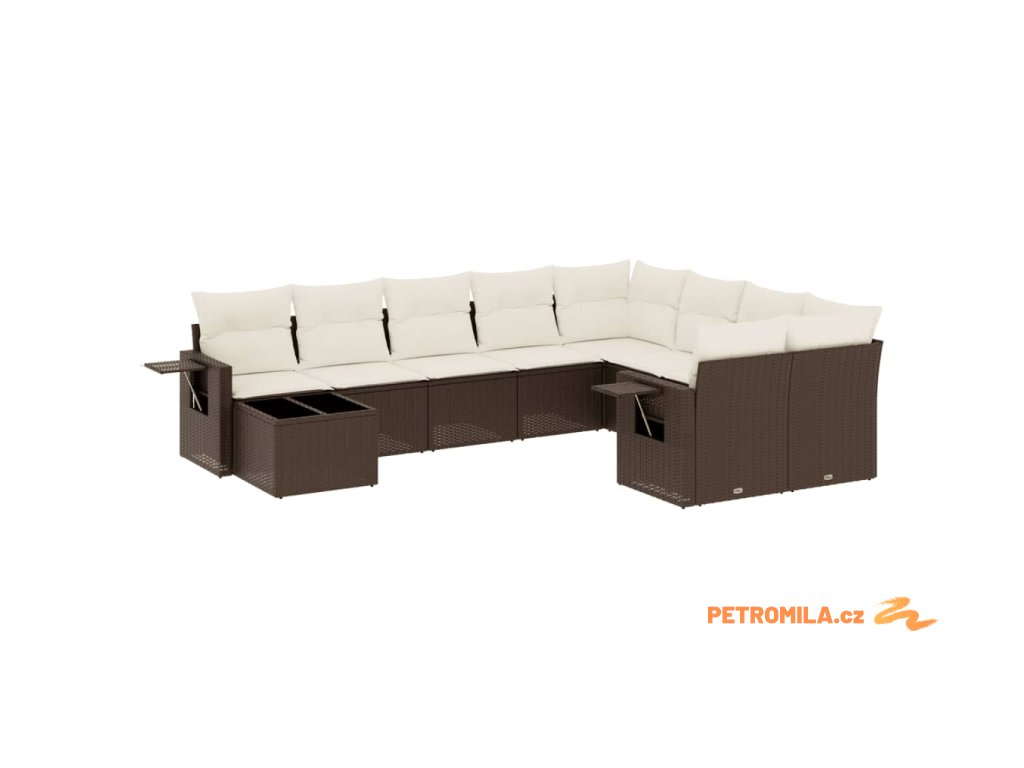 10dílná zahradní sedací souprava s poduškami hnědá polyratan