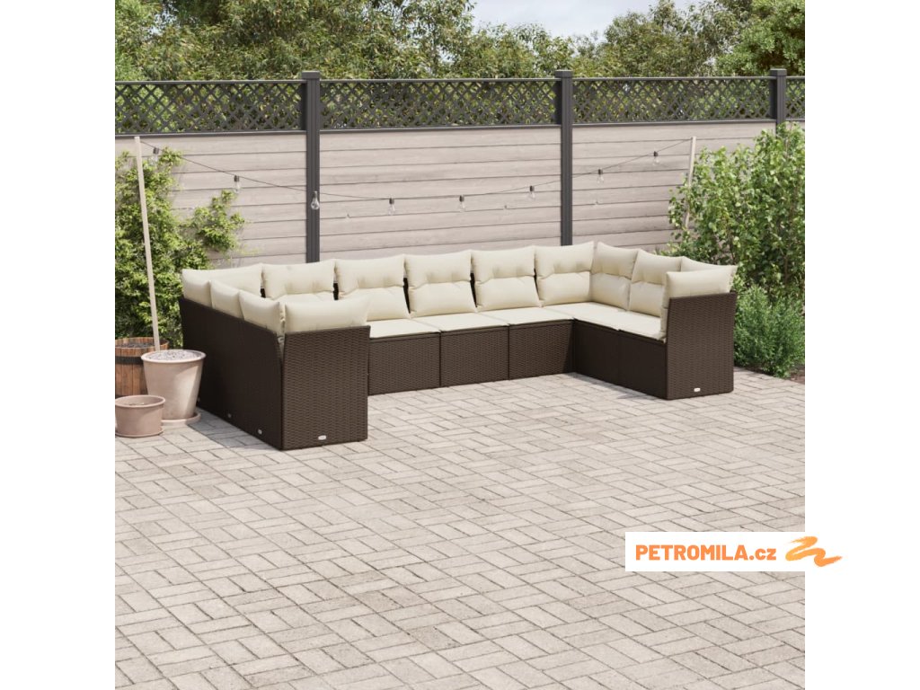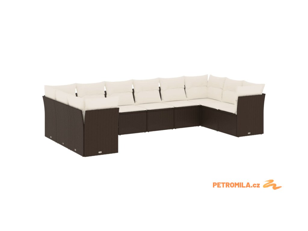 10dílná zahradní sedací souprava s poduškami hnědá polyratan
