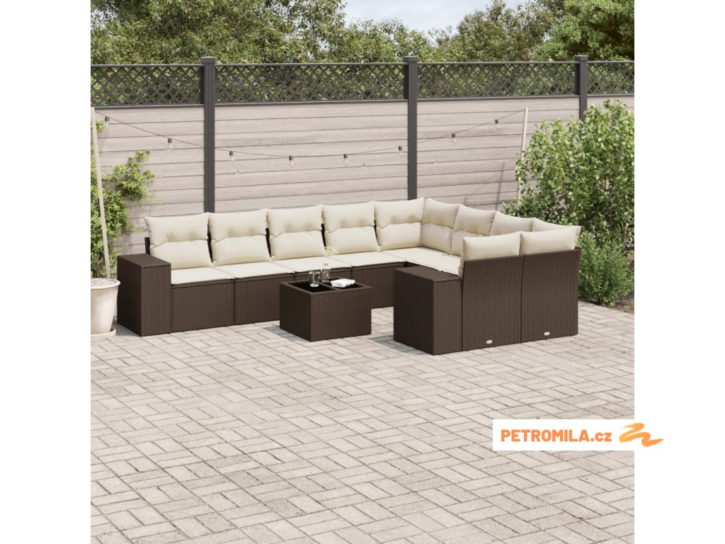 10dílná zahradní sedací souprava s poduškami hnědá polyratan