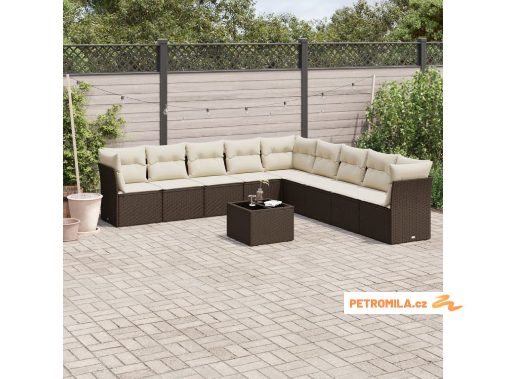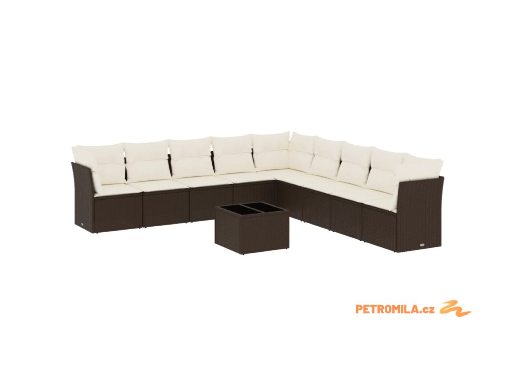 10dílná zahradní sedací souprava s poduškami hnědá polyratan