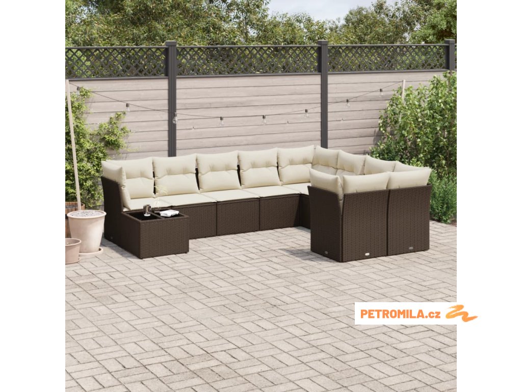 10dílná zahradní sedací souprava s poduškami hnědá polyratan
