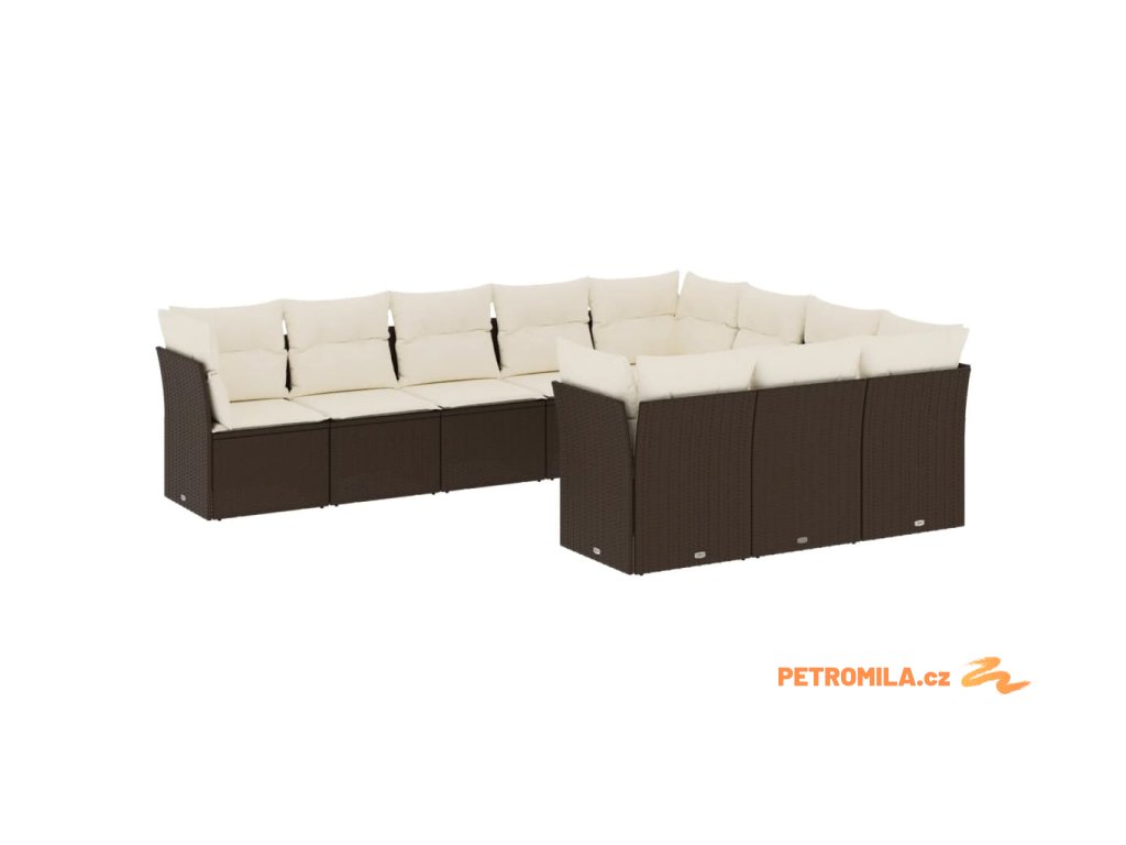 10dílná zahradní sedací souprava s poduškami hnědá polyratan
