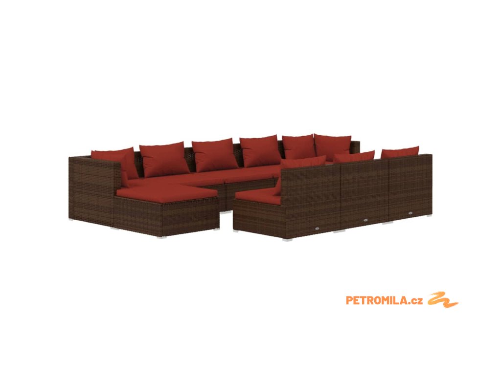 10dílná zahradní sedací souprava s poduškami hnědá polyratan
