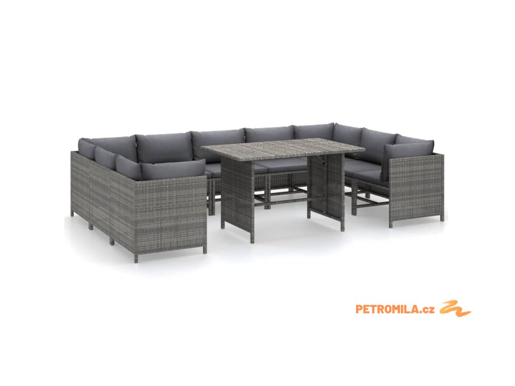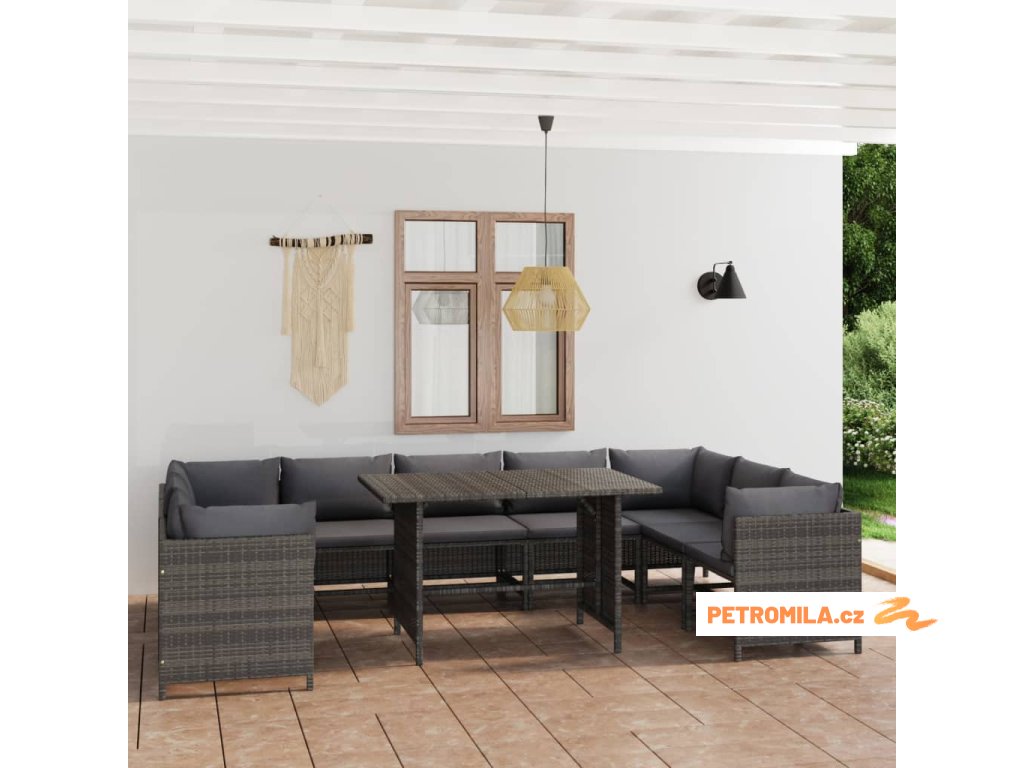 10dílná zahradní sedací souprava s poduškami polyratan šedá