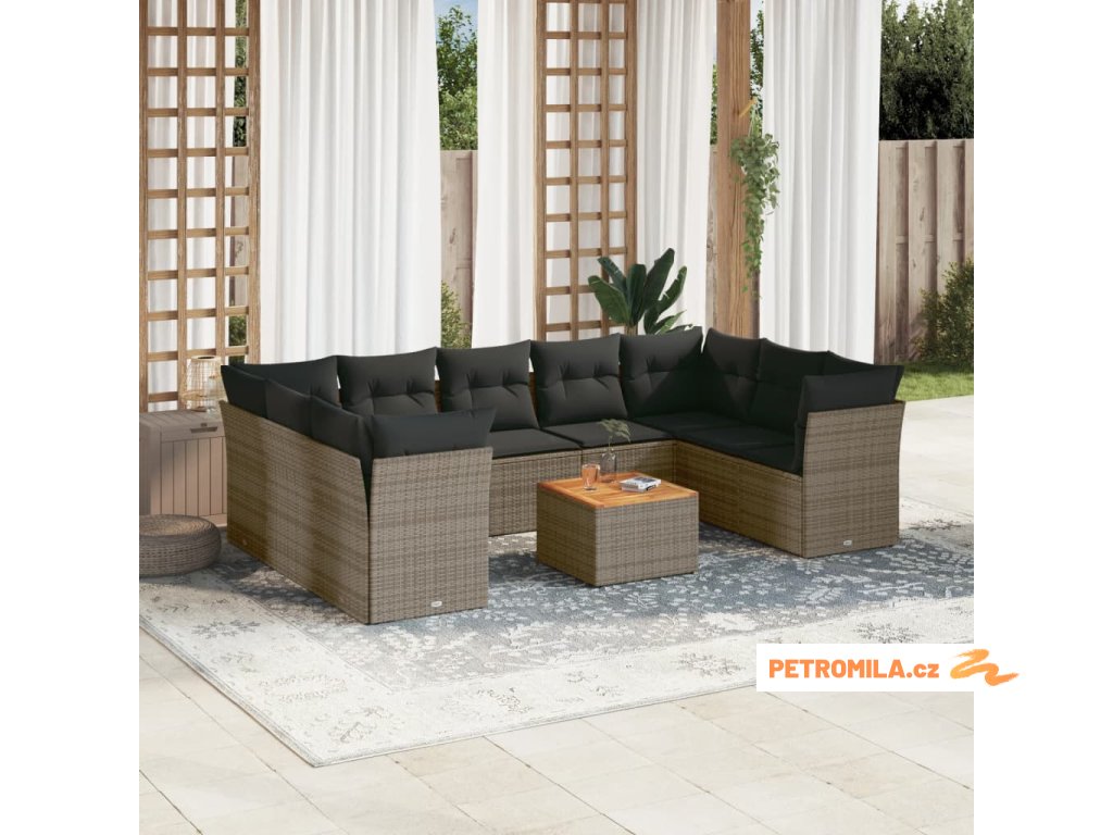 10dílná zahradní sedací souprava s poduškami šedá polyratan