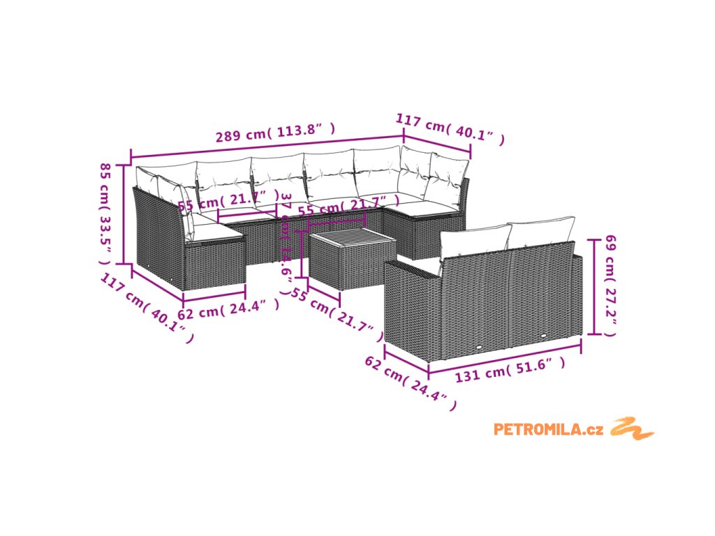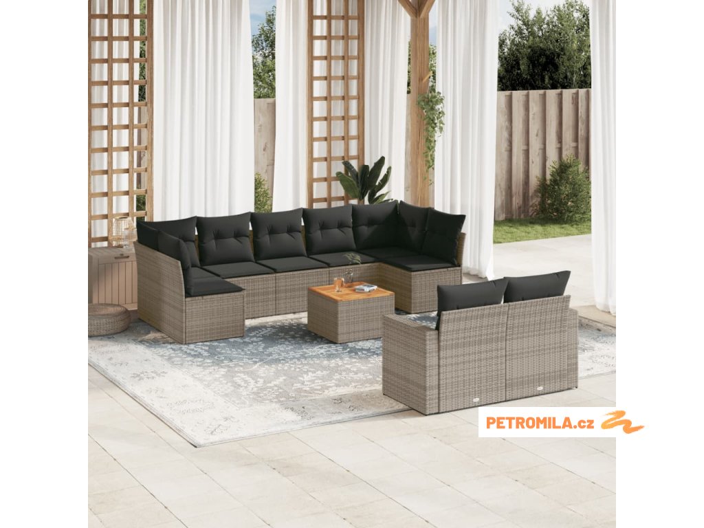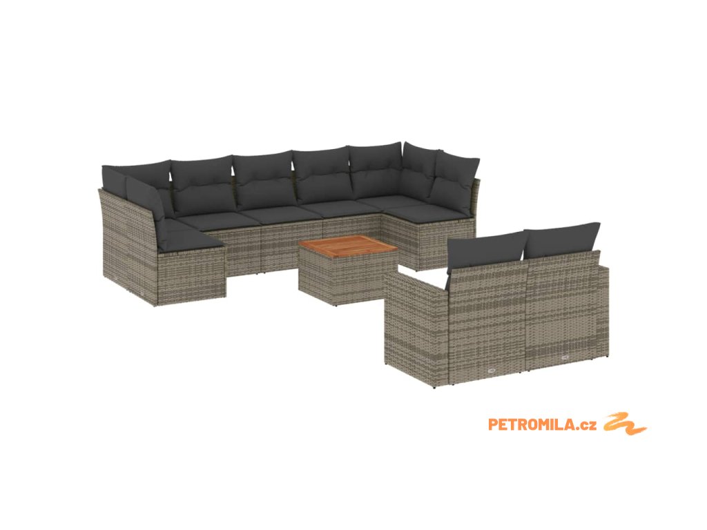 10dílná zahradní sedací souprava s poduškami šedá polyratan