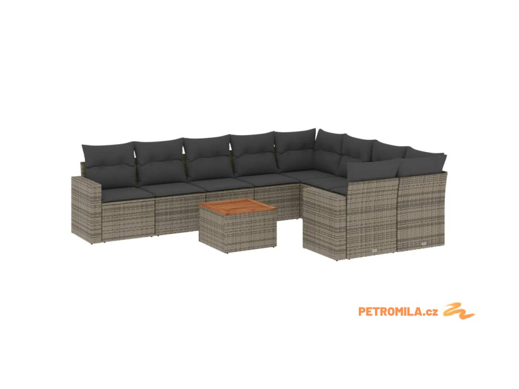10dílná zahradní sedací souprava s poduškami šedá polyratan