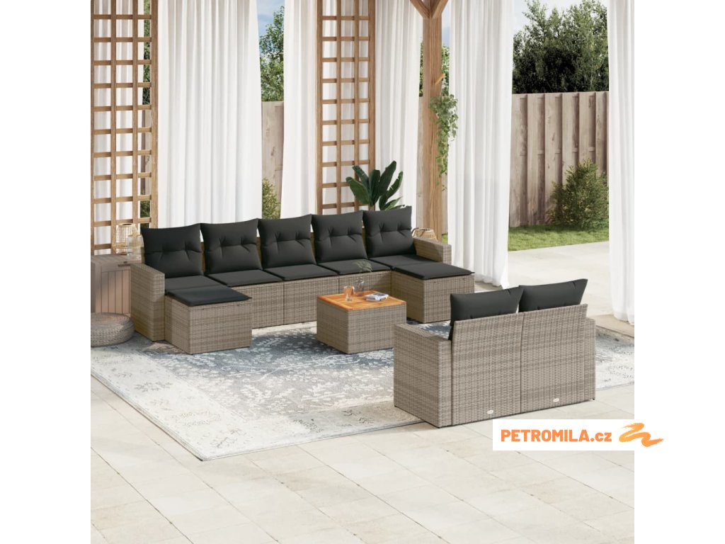 10dílná zahradní sedací souprava s poduškami šedá polyratan