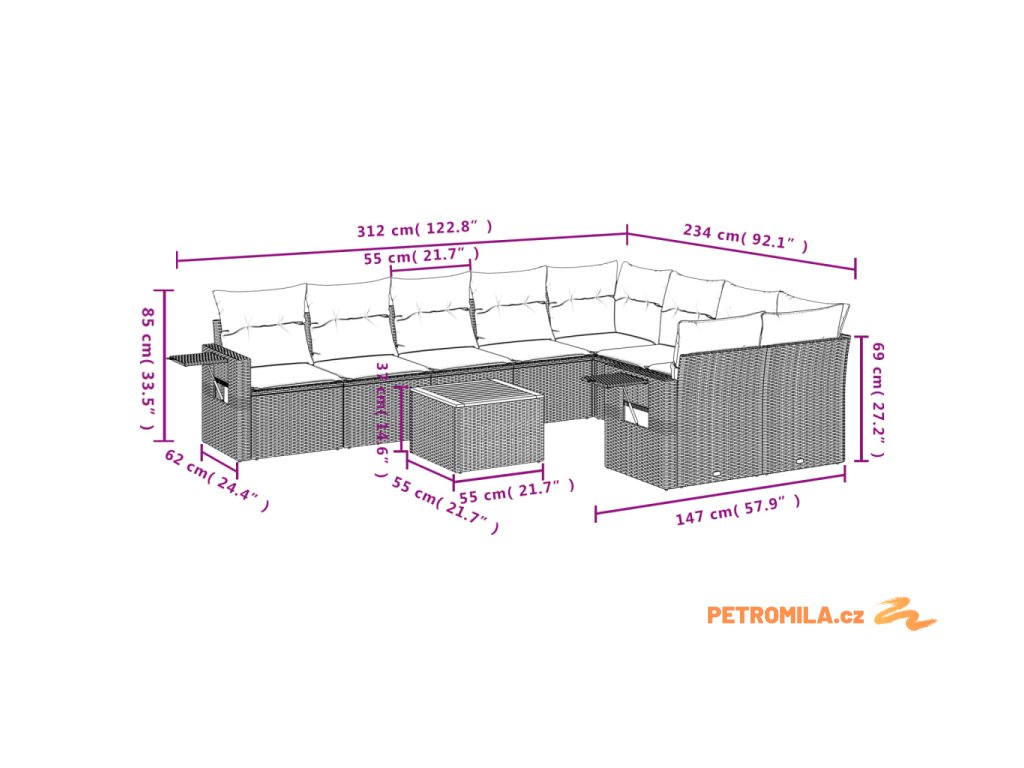 Tato zahradní sedací souprava je dokonalým doplňkem vaší zahrady, terasy nebo dvorku a poskytne vám pohodlné a příjemné místo, kde si můžete povídat s rodinou a přáteli nebo jen tak odpočívat a užívat si pobyt venku.