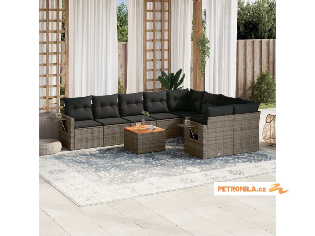 10dílná zahradní sedací souprava s poduškami šedá polyratan