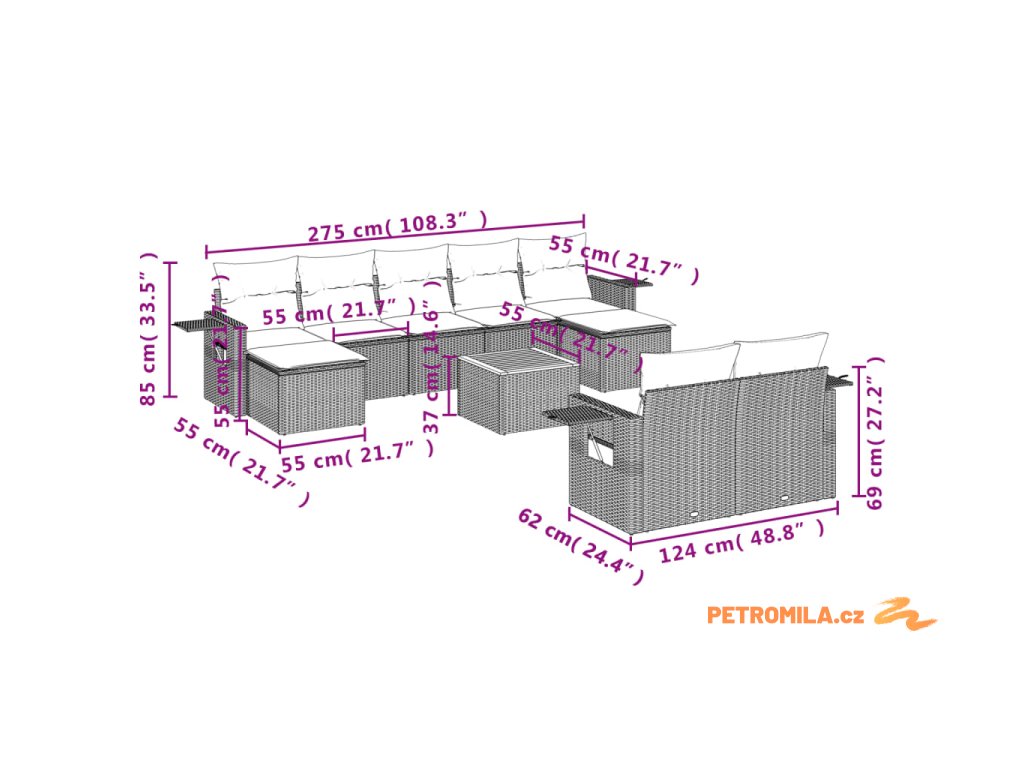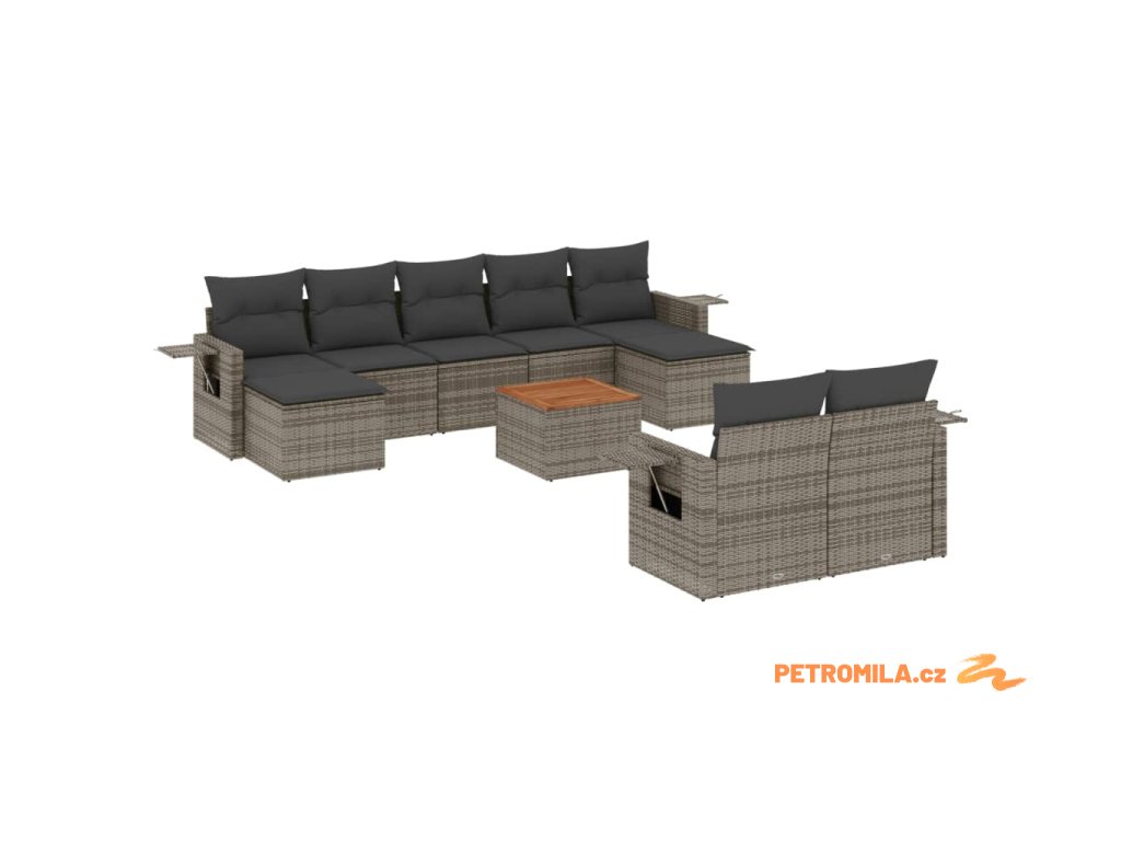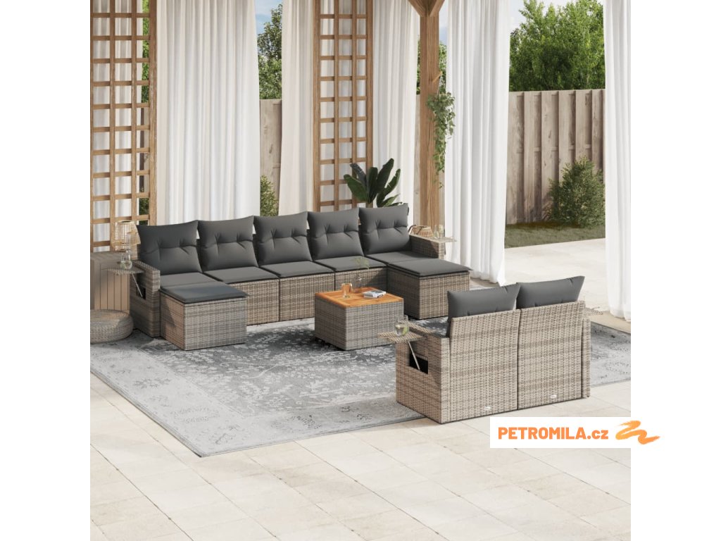 10dílná zahradní sedací souprava s poduškami šedá polyratan