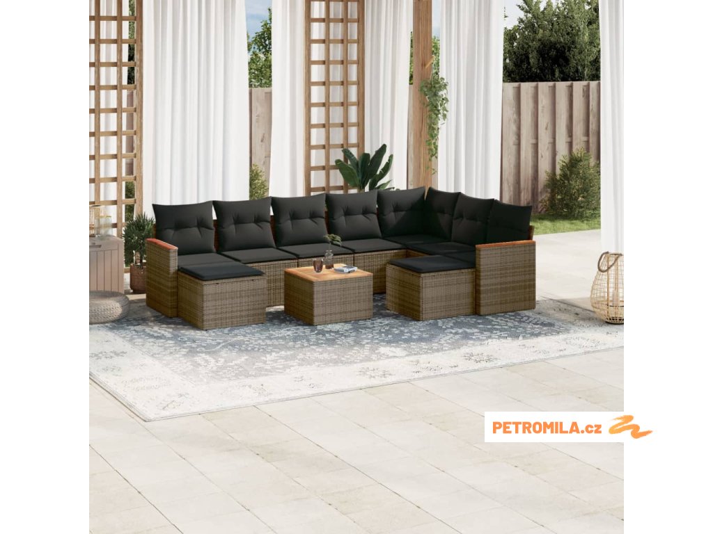 10dílná zahradní sedací souprava s poduškami šedá polyratan