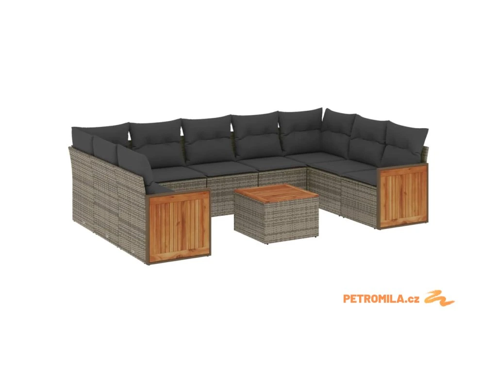 10dílná zahradní sedací souprava s poduškami šedá polyratan