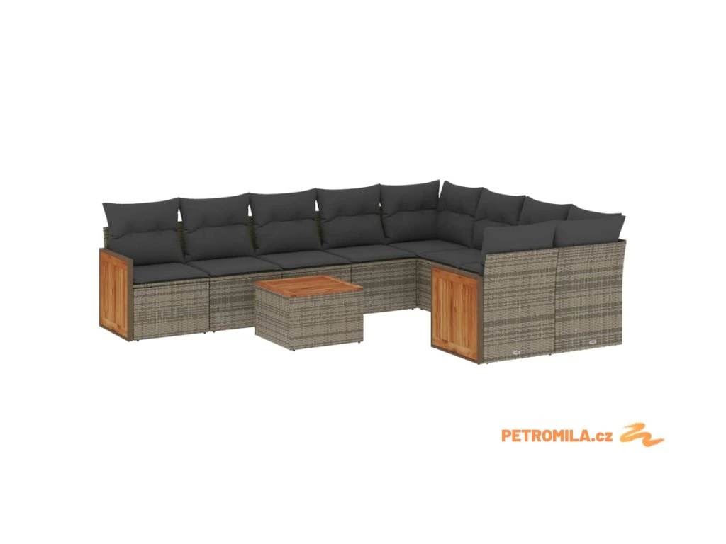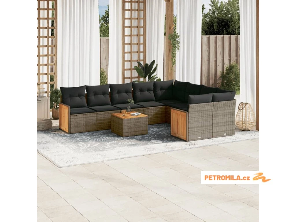 10dílná zahradní sedací souprava s poduškami šedá polyratan