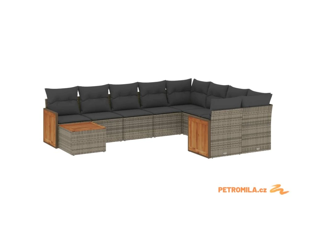 10dílná zahradní sedací souprava s poduškami šedá polyratan