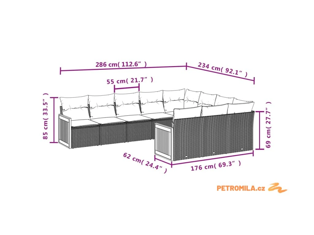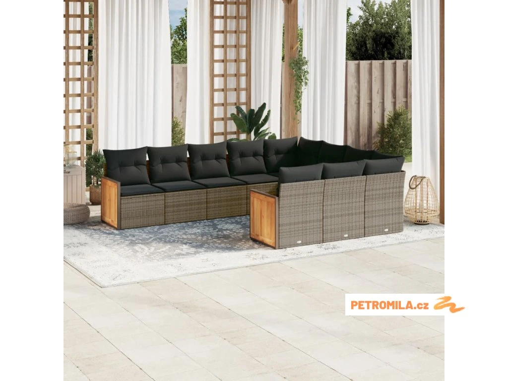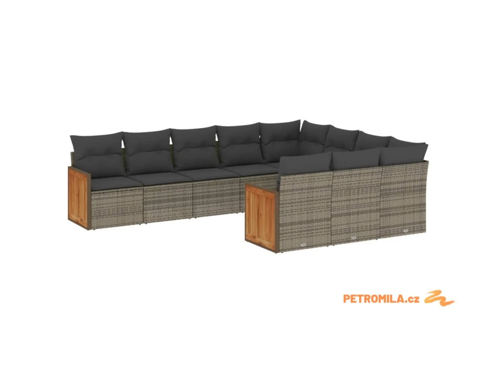 10dílná zahradní sedací souprava s poduškami šedá polyratan