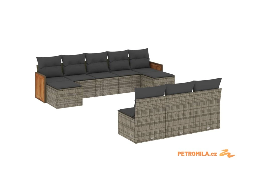 10dílná zahradní sedací souprava s poduškami šedá polyratan