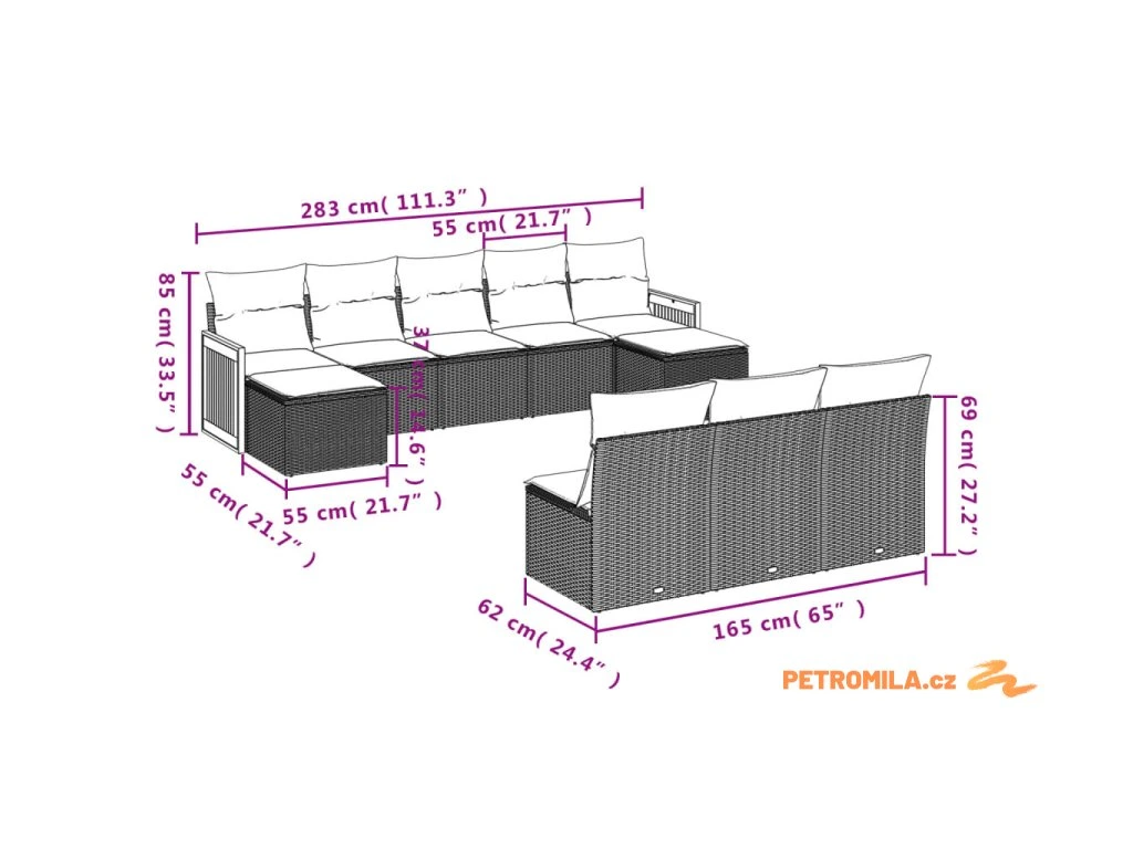 - Modulární design: Tato sada venkovního nábytku se vyznačuje modulární konstrukcí, je tedy zcela flexibilní a lze ji snadno přemisťovat, takže si můžete uspořádat venkovní nábytek dle vašich potřeb.