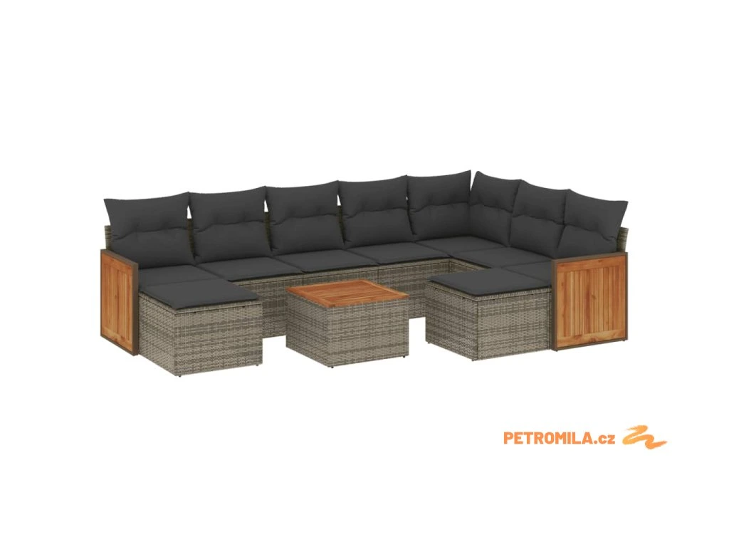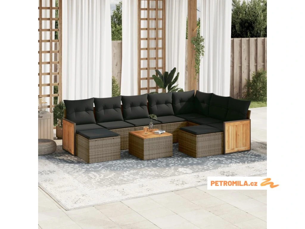 10dílná zahradní sedací souprava s poduškami šedá polyratan