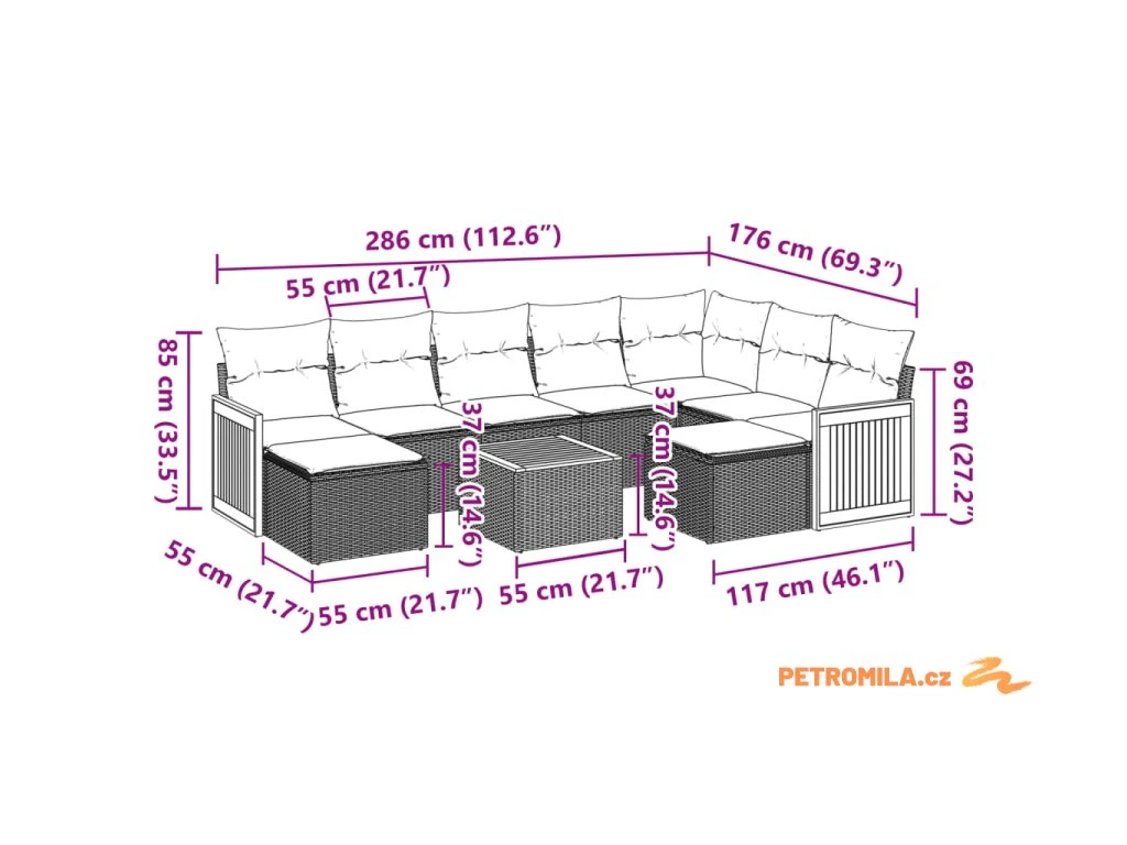 - Modulární design: Tato sada venkovního nábytku se vyznačuje modulární konstrukcí, je tedy zcela flexibilní a lze ji snadno přemisťovat, takže si můžete uspořádat venkovní nábytek dle vašich potřeb.