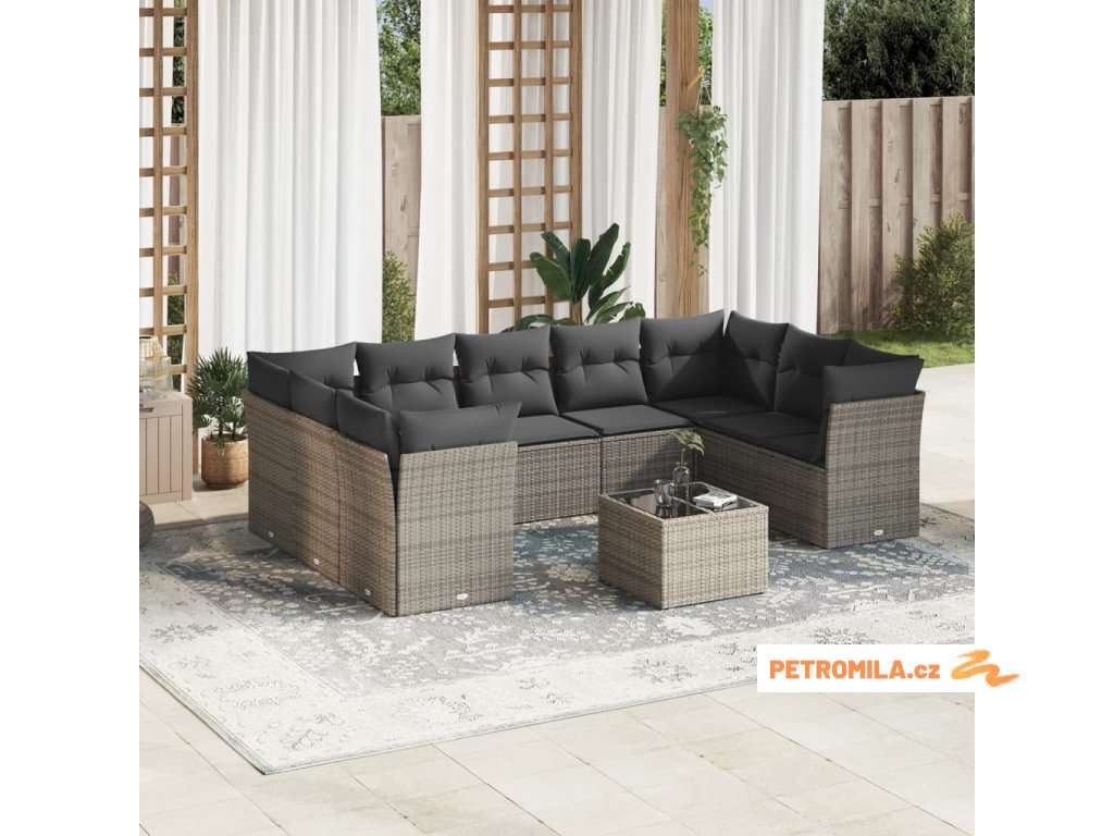 10dílná zahradní sedací souprava s poduškami šedá polyratan